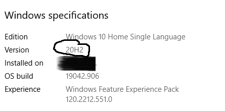 2. Obratite pažnju na arhitekturu da li je Vaš OS (Operativni sistem) 32 ili 64 Bit, takođe  pronađite sekciju Windows Specifications, skrolujte na dole ili pomerite klizač sa desne strane na dole – Version 20H2 u našem slučaju, prema tome preuzimate odgovarajuć Patch na sledećim linkovima koji su prilogu.
